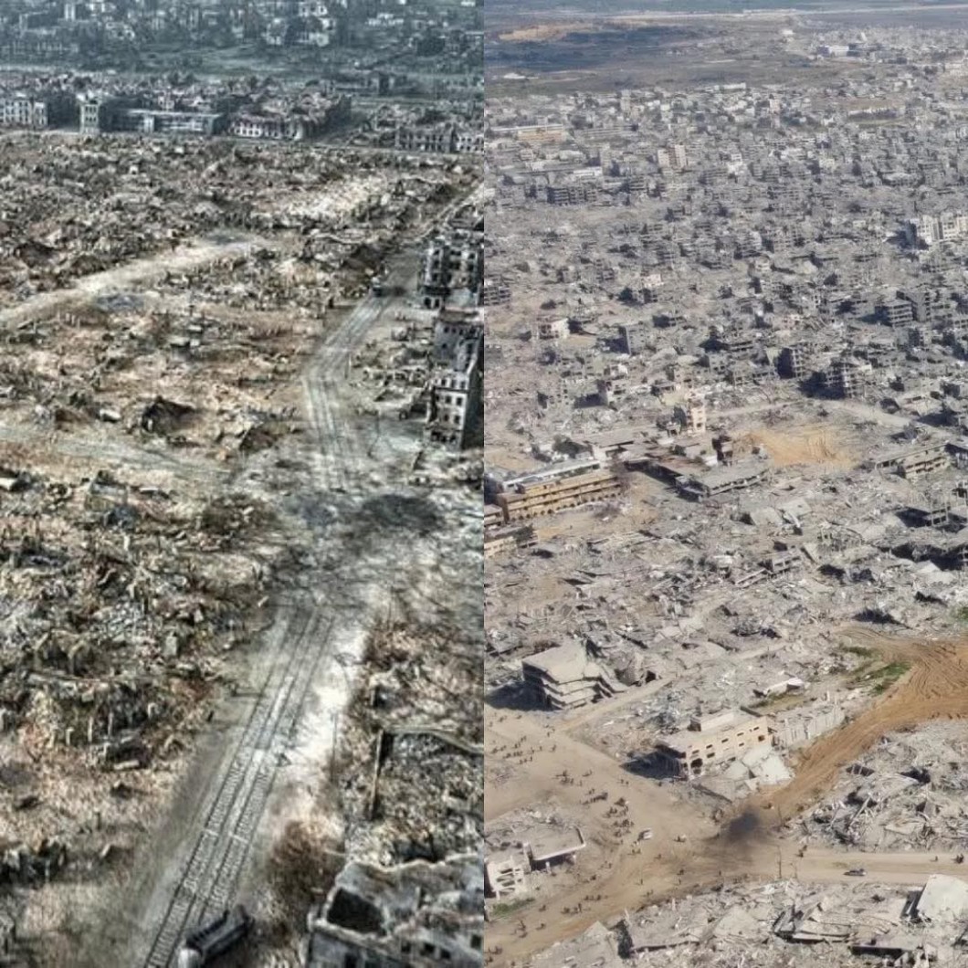 AUTOR•Po lewej Warszawa w 1944 roku , a po prawej strefa gazy w 2025 roku