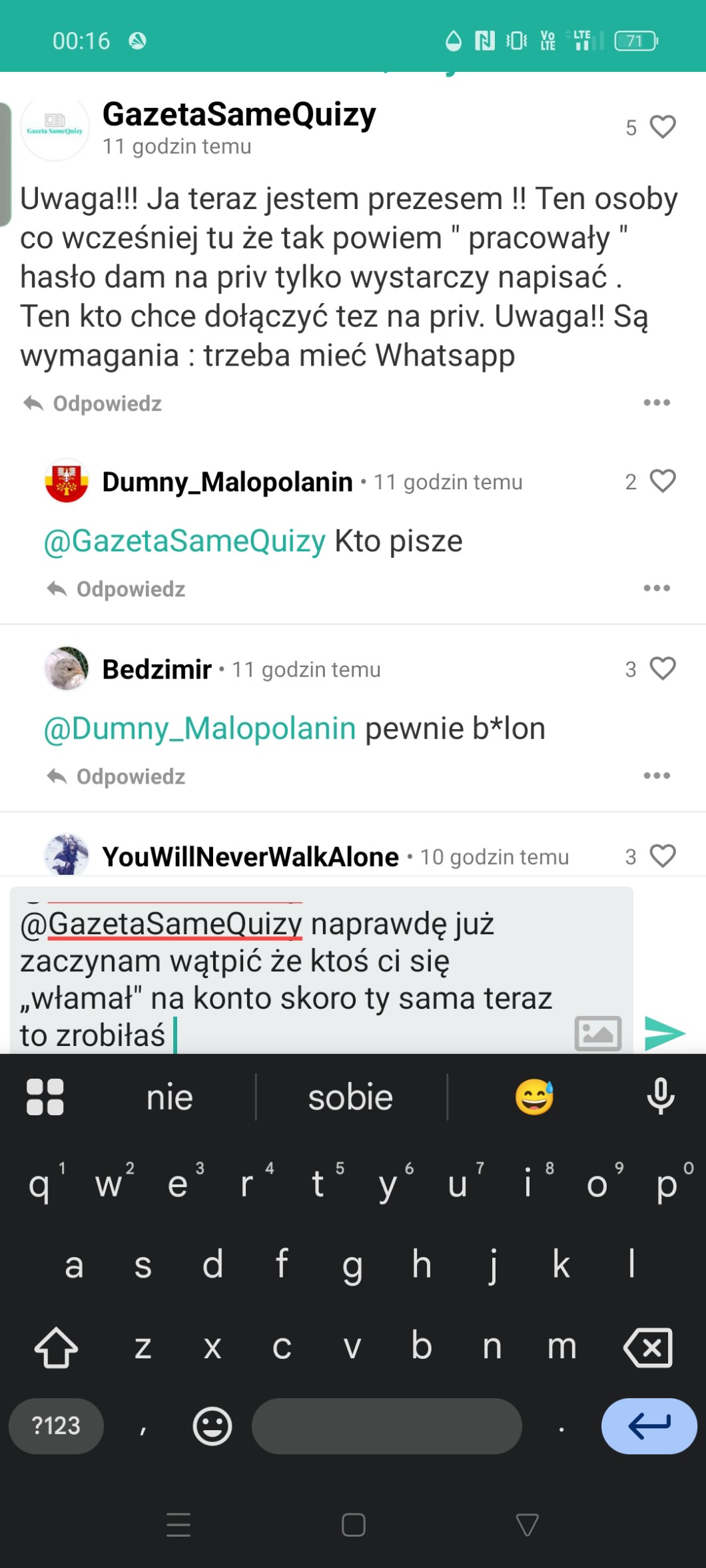 AUTOR•To jest ostateczny dowód na to że bilon zmyśla i nikt nie włamał się na jej konto (podsumując ona przejęła konto gazety i zmieniła hasło pomimo że to nie jest jej gazeta i nikt nie mianował jej prezesem)
