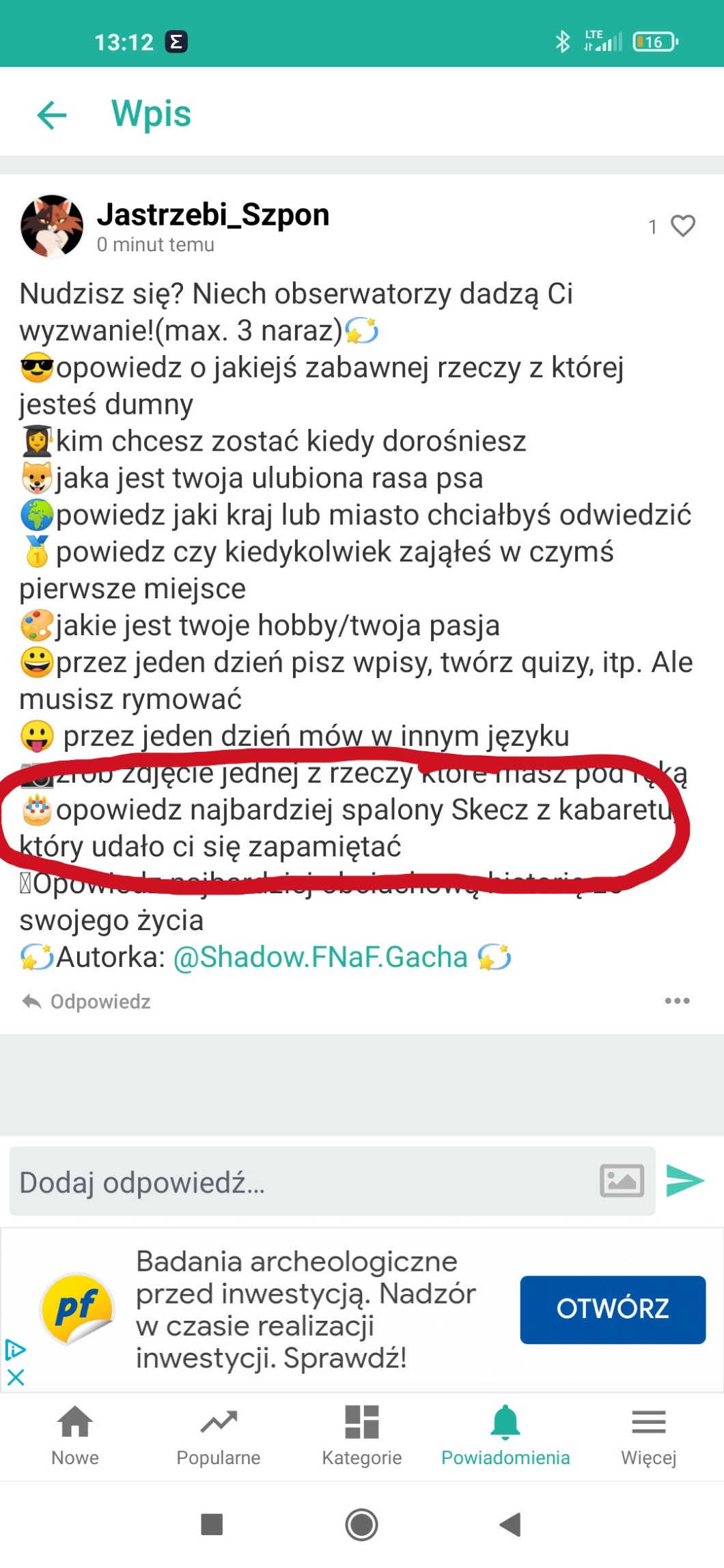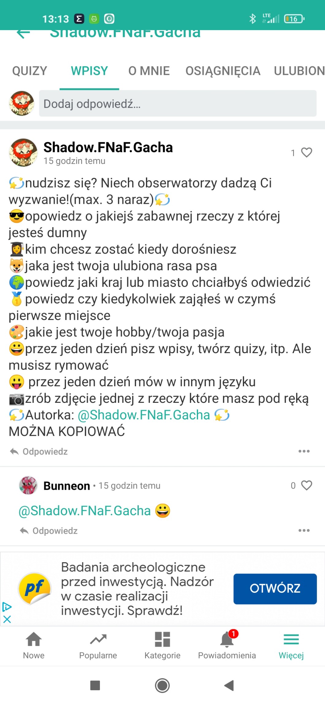Przy pomocy wpisów możesz zadać autorowi pytanie, pochwalić go, poprosić o pomoc, a
