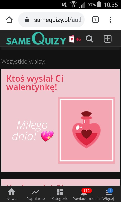 I dzisiejsze Walentynki które otrzymałam mnie intrygują *^* ja muszę wiedzieć kto to ale no to dopiero na kompie bo mój tel robi tańce pomarańcze XD