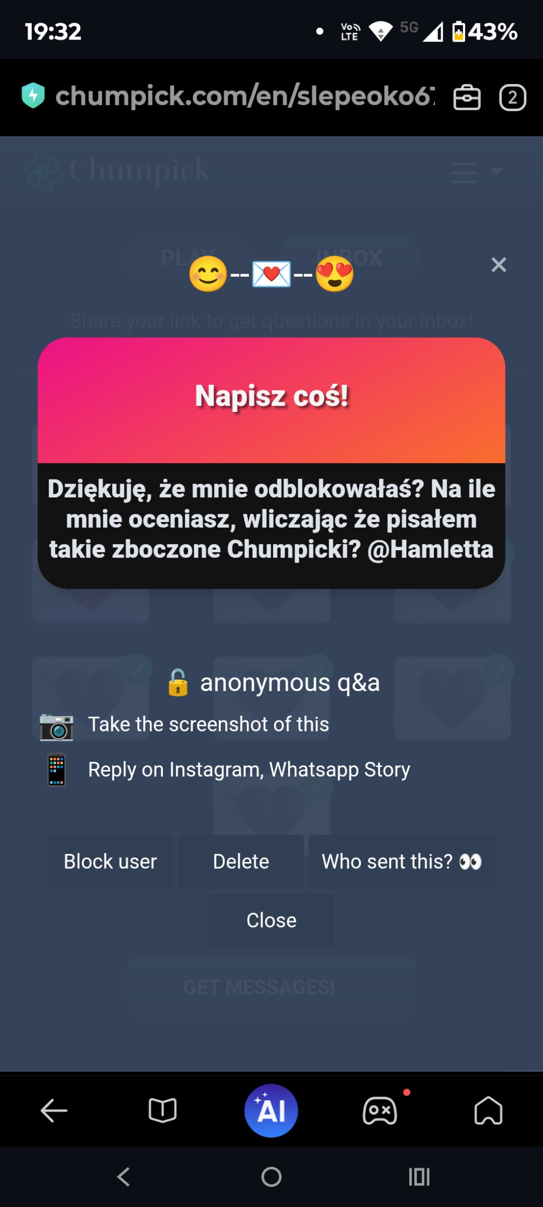 @Slepe_oko Hamletta ponoć napisał do Ciebie na Chumpicku