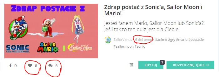 Wiecie że sameQuizy to dziwna strona? xD. Patrzcie na to! 6 serc, 6 komentarzy i 6 dni temu :(