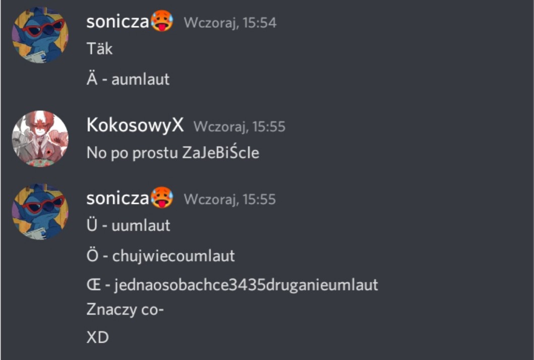 AUTOR•Pov. Podczas pisania na dsc przypomina ci sie niemiecki i nie wiesz co napisać więc piszesz umlauty i wymyślasz im nazwy heh