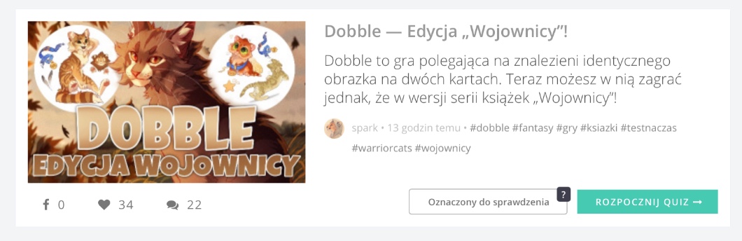 ❀ https://samequizy.pl/dobble-edycja-wojownicy/ — gdybyście chcieli na niego wpaść to tu macie link.