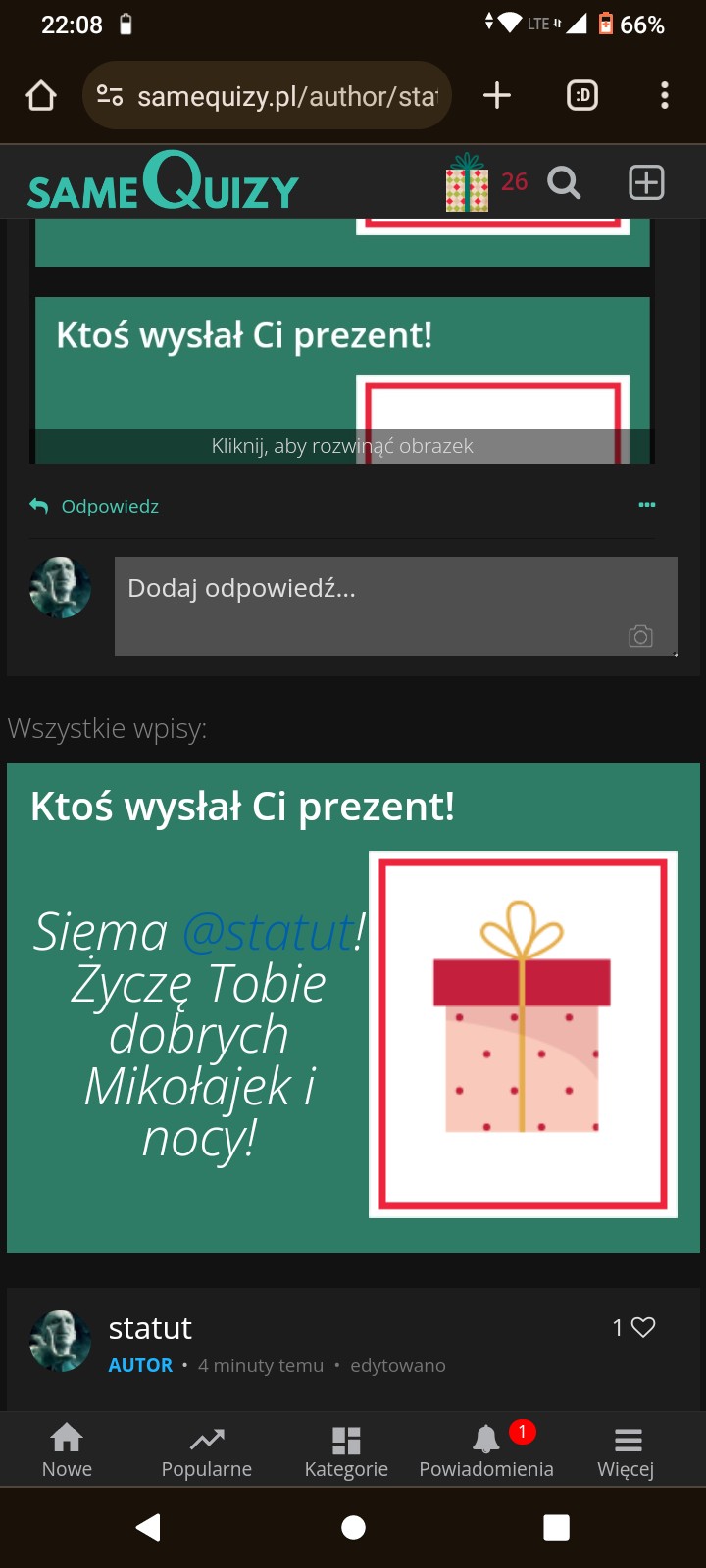 Przy pomocy wpisów możesz zadać autorowi pytanie, pochwalić go, poprosić o pomoc, a