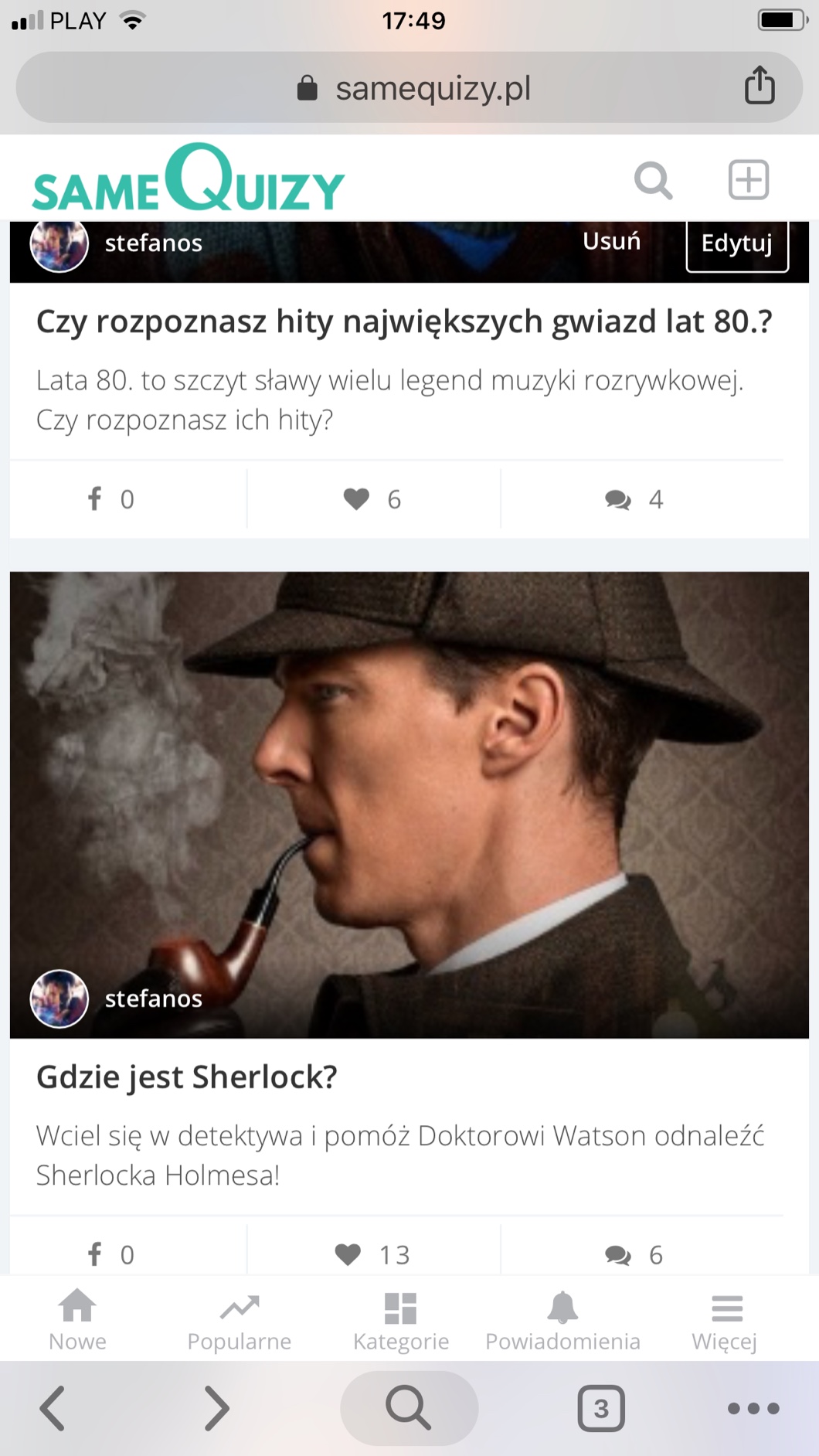 Pierwszy quiz trafił do popularnych i 11 straciło możliwość edycji😁😉👌