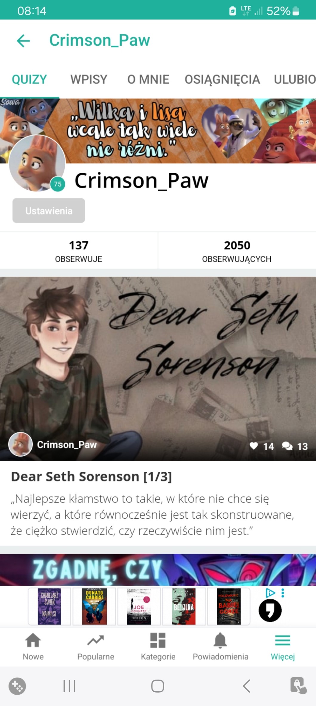 Mam wrażenie, że jak wbiję 100 Quizów na sg, to przestanę cokolwiek dodawać, ale patrząc na obecne tempo, jeszcze trochę do tego brakuje xd