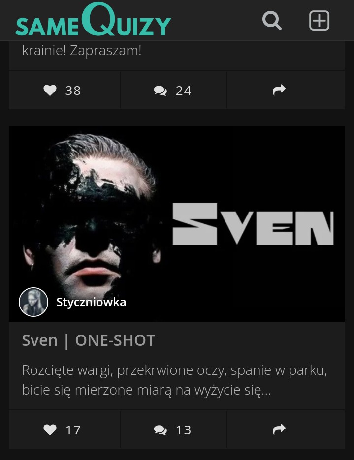 Pamiętam, jak zakładając tu konto, moim zamiarem było, aby dwa moje opowiadania trafiły na Stronę Główną – w zamyśle miały to być: "Piąte koło u wozu" oraz "Mamo, jesteś najważniejsza" – nie udało się. Lecz za to trafiło tam "Poświęcenie" i teraz "Sven". W pewnym sensie cel osiągnięty i czuję się spełniona. Wtedy myślałam, że po tamtych dwóch pracach moja działalność tutaj się zakończy i przeniosę się w całości na Wattpada. Tak jednak się nie stało i moja przygoda nadal tu trwa i oby trwała jak najdłużej!