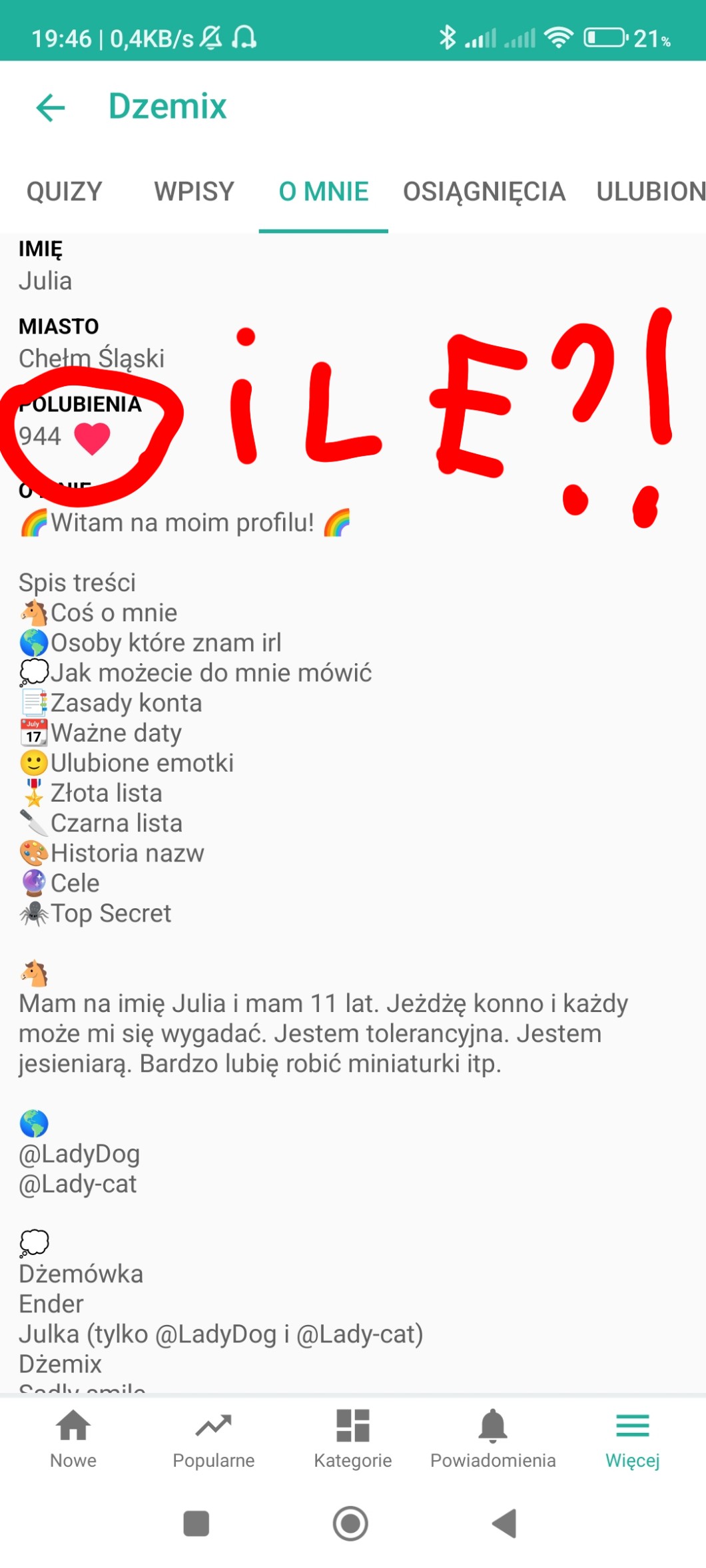 TO ŚWIETNIE TRAFIŁEŚ! 😻@Bajklil_Julki CHCIAŁABY DOBIĆ DO KONCA TEGO MIESIĄCA 100 OBSERWACJI JEDNAK DUUUUŻO JESZCZE JEJ BRAKUJE! WYSTRACZY ŻE DASZ @Bajklil_Julki OBSERWACJE I POLUBISZ JEJ WSZYTSKIE QUIZY! W ZAMIAN ZA RO DOSTANIESZ;