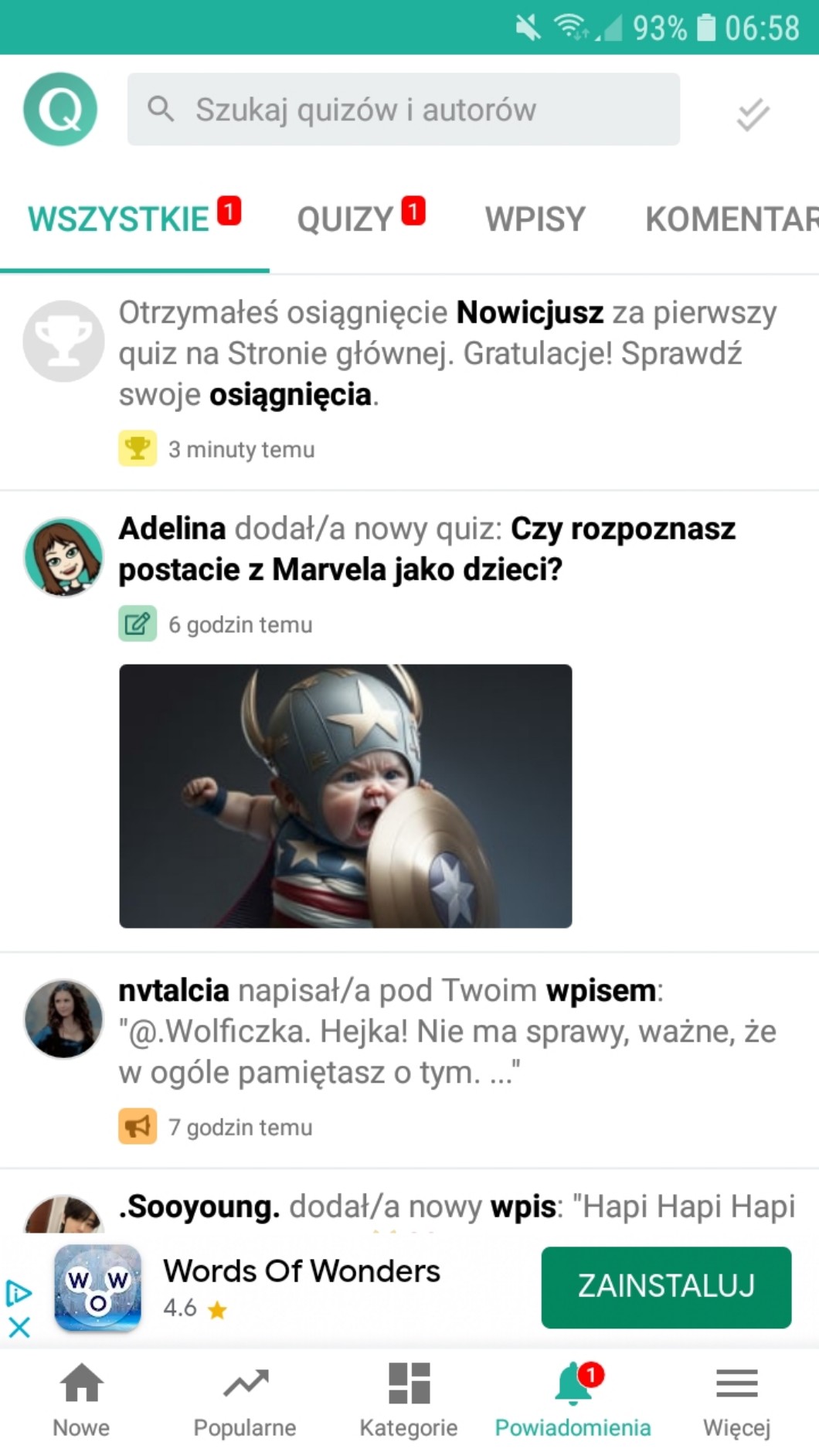 OMG, jak zobaczyłam, że modzi dali mój quiz na SG to byłam naprawdę przeszczęśliwa. Stałam przez kilkanaście sekund w miejscu i ledwo co oddychałam z wrażenia, bo myślałam, że to jest jakiś żart 😅