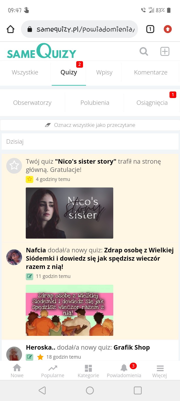 AUTOR•Jejusiu!! ⬇️ I jeszcze dostałam osiągnięcie 'quizmistrz'