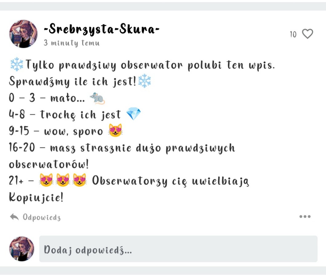 @-Srebrzysta-Skura- nie wiedziałam, że obserwatorzy mnie uwielbiają 😄