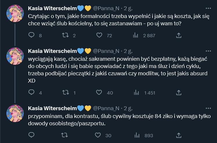 Ja bym z chęcią wziął ślub kościelny, jeśli kiedyś bym miał dziewczynę. Ale niestety nie będzie to możliwe, nad czym ubolewam :// (kościół nie lubi lesbijkowania)