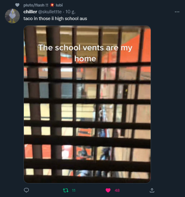 Naiwna ja myślałam, że zwykłe pominięcie wątku tego, że nie wszyscy zdawali sobie sprawę z obecności Taco wystarczy w moim II polska szkoła au… ale się myliłem… Na szczęście przejrzałam na oczy i teraz Taco będzie mieszkać w wentylacji, niczym impostor, którym trochę jest