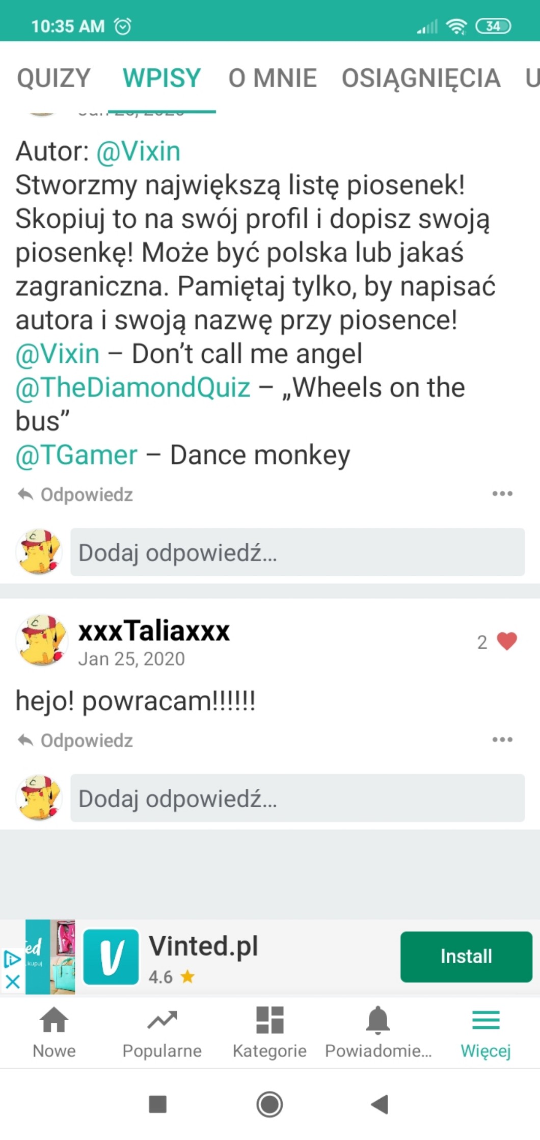 Przy pomocy wpisów możesz zadać autorowi pytanie, pochwalić go, poprosić o pomoc, a