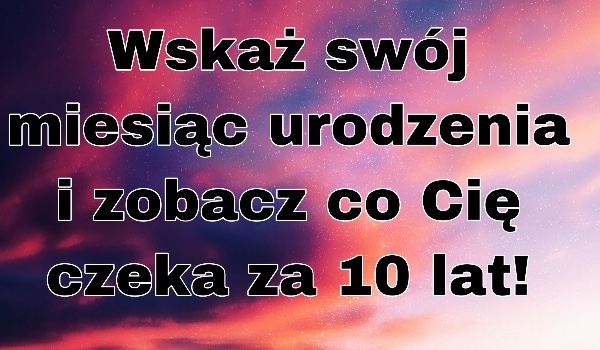 http.lauraxv Wskaż swój miesiąc urodzenia i zobacz co Cię czeka za 10 lat! Wskaż swój miesiąc urodzenia i zobacz co Cię czeka za 10 lat! http.lauraxv • 6 lat temu • #miesiac 3 2 Rozpocznij quiz