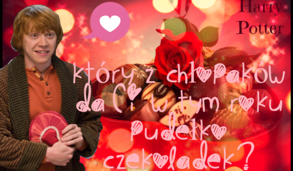 thekozacka12 Który z chłopaków da Ci w tym roku pudełko czekoladek? – Harry Potter Daj się pociągnąć temu quizowi a zobaczysz od kogo z Harrego Pottera dostaniesz czekoladki.(PS. nie dla chłopaków!XD) thekozacka12 • 9 lat temu • #czekoladki #harry #hp #milosc #potter #potterhead #quiz #test #walentynki #walentynki2017 3 1 Rozpocznij quiz