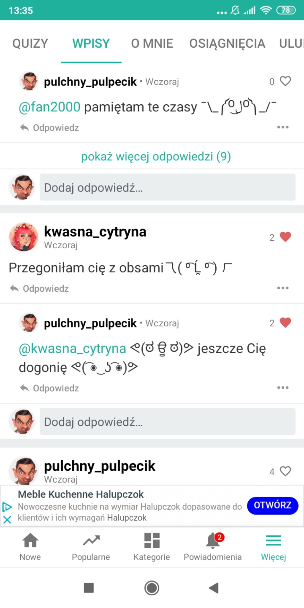 Przy pomocy wpisów możesz zadać autorowi pytanie, pochwalić go, poprosić o pomoc, a
