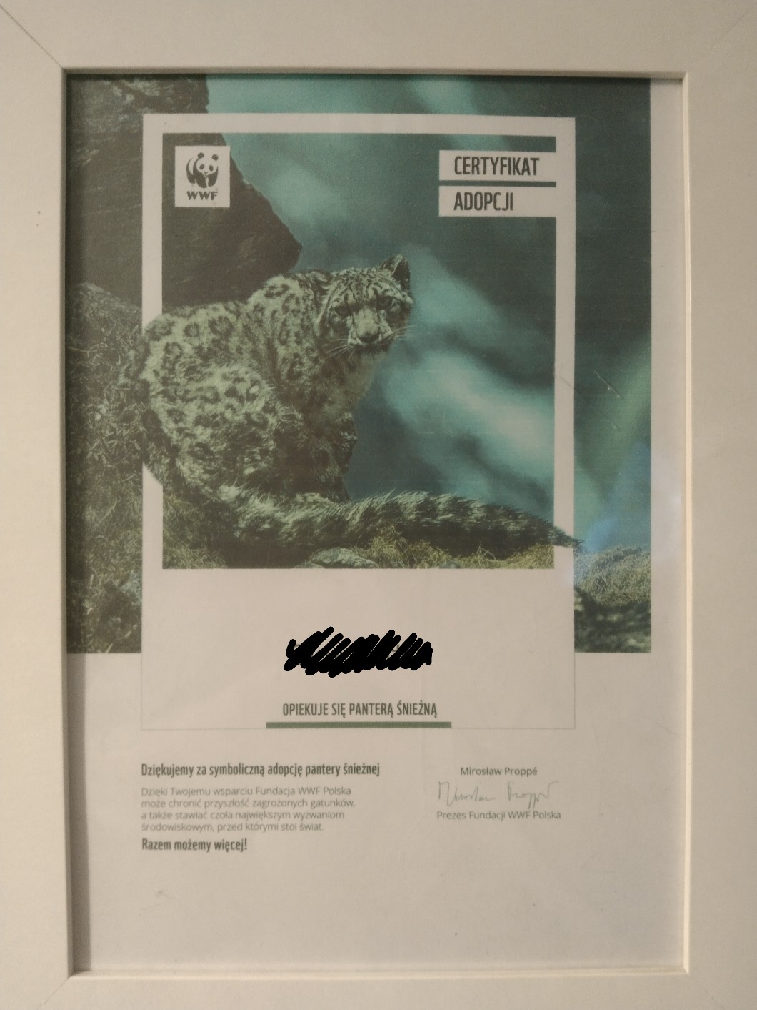 AUTOR•A to mój certyfikat :) "Adoptuje śnieżną panterę"