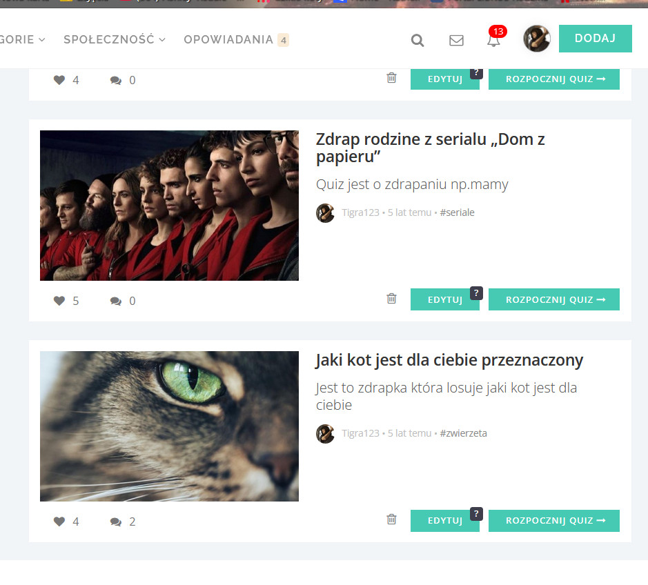 Ale tak szczerze? Ten quiz co mam go odnowić na konkurs jest okropny i strasznie głupi przy tym. Nie dość, że tytuł to banał to jeszcze jest to zdrapka XD
