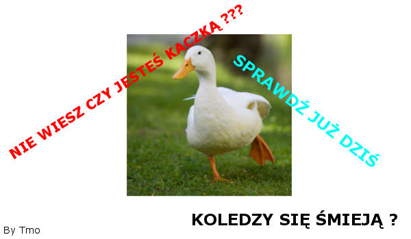 Tmo_Tomanowski Czy jesteś kaczką ? Koledzy mówią Ci że nie jesteś kaczką??? Sprawdź sam i się przekonaj ! Tmo_Tomanowski • 10 lat temu • #anime #bam #biblia #cowolisz #creepypasta #film #filmy #glosowanie #gra #gry #harry-potter #hp #kaczka #kaczucha #ksiazka #ksiazki #magia #milosc #muzyka #ogon #opowiadanie #osobowosc #potterhead #przygoda #przygody #quiz #samopoczucie #serial #smierc #test #youtube #yt #zgadywanka #zloty #zolty #zwierzeta 3 2 Rozpocznij quiz