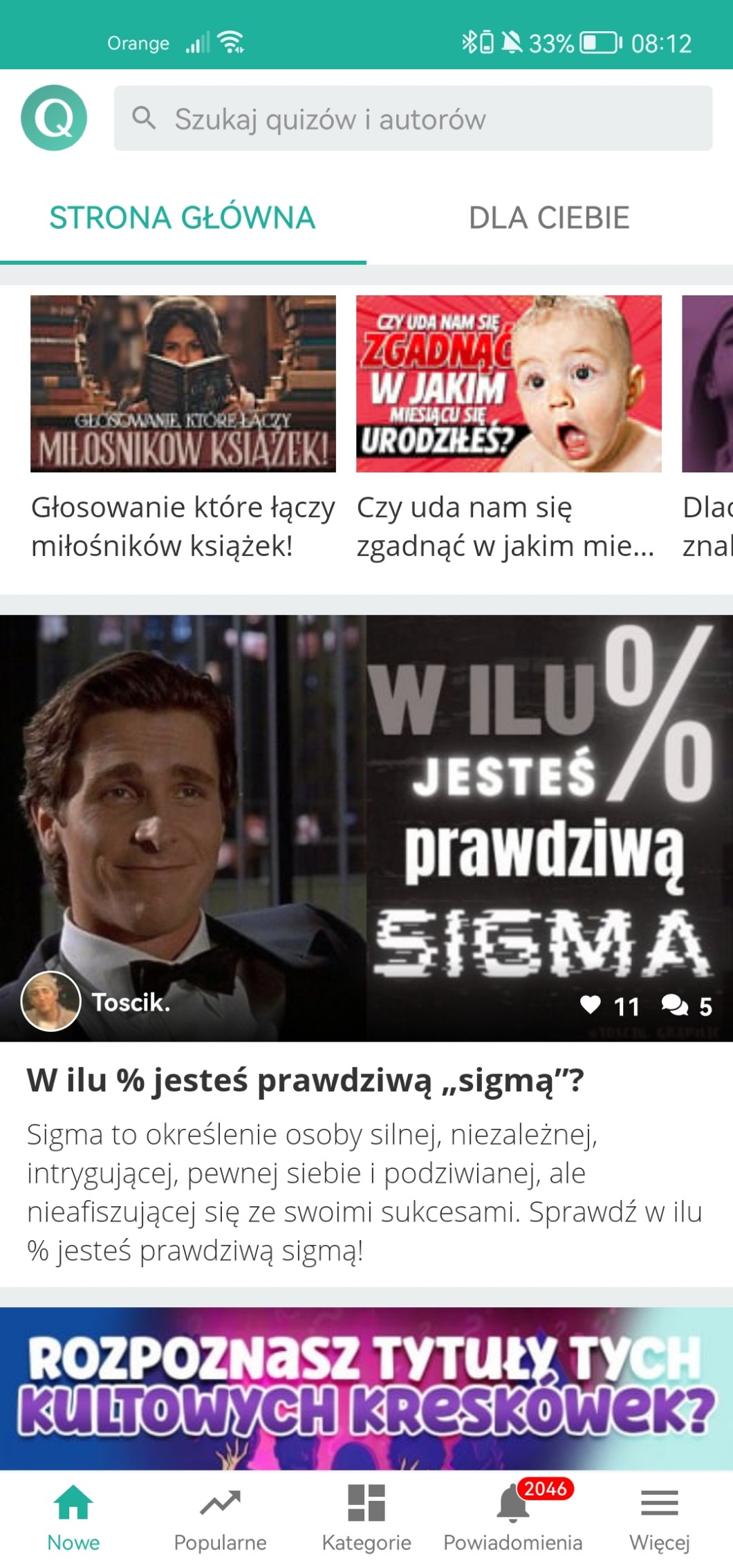 | właśnie zobaczyłam że mój quizik trafił na główną 🎉