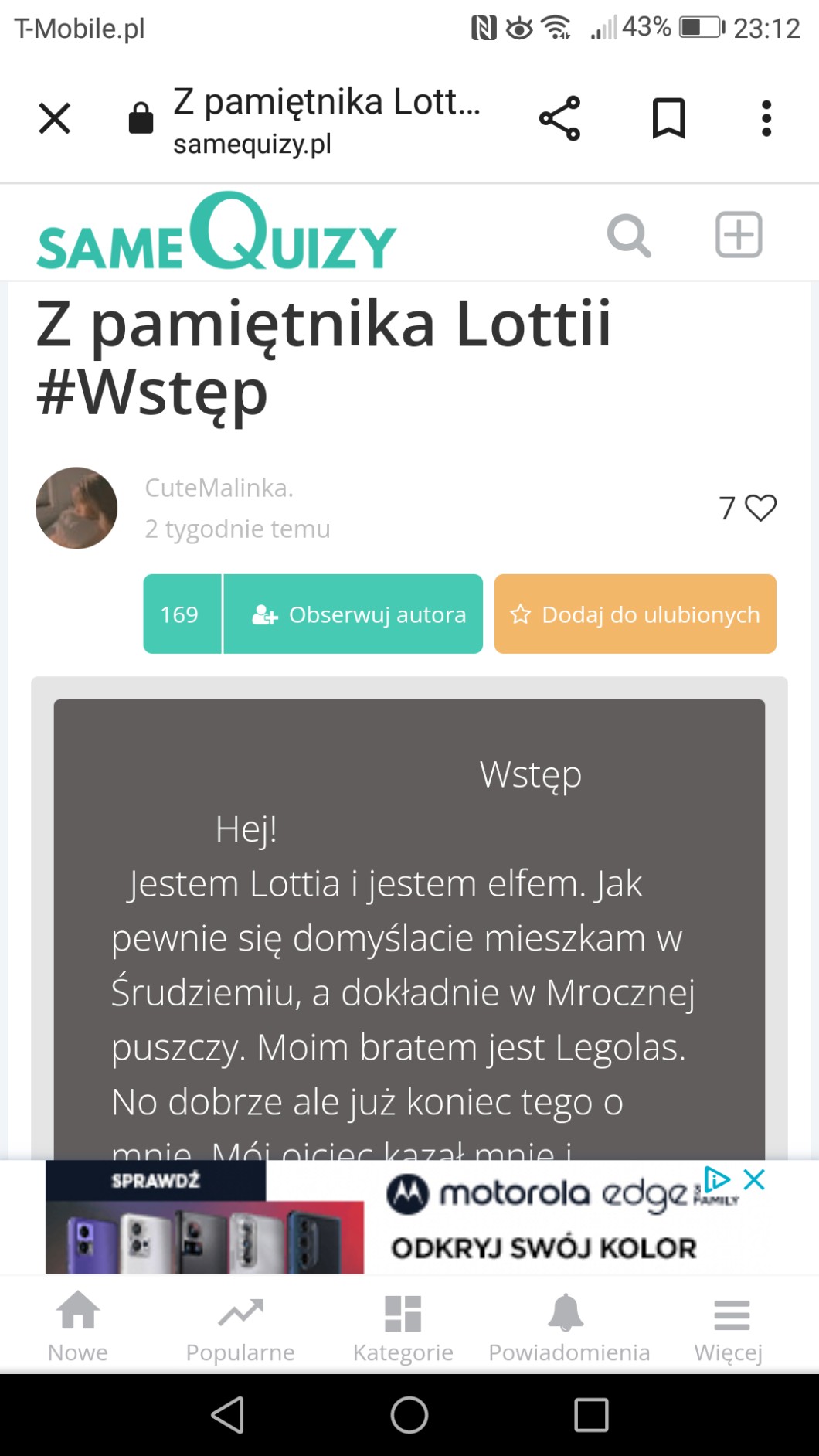 AUTOR•Wie ktoś może, czy Lottia było faktycznym elfickim imieniem w uniwersum Tolkiena, I to w dodatku jakimś super fajnym? Bo kolejny raz widzę fanfiction z Władcy Pierścieni gdzie główna bohaterka ma na imię Lottia