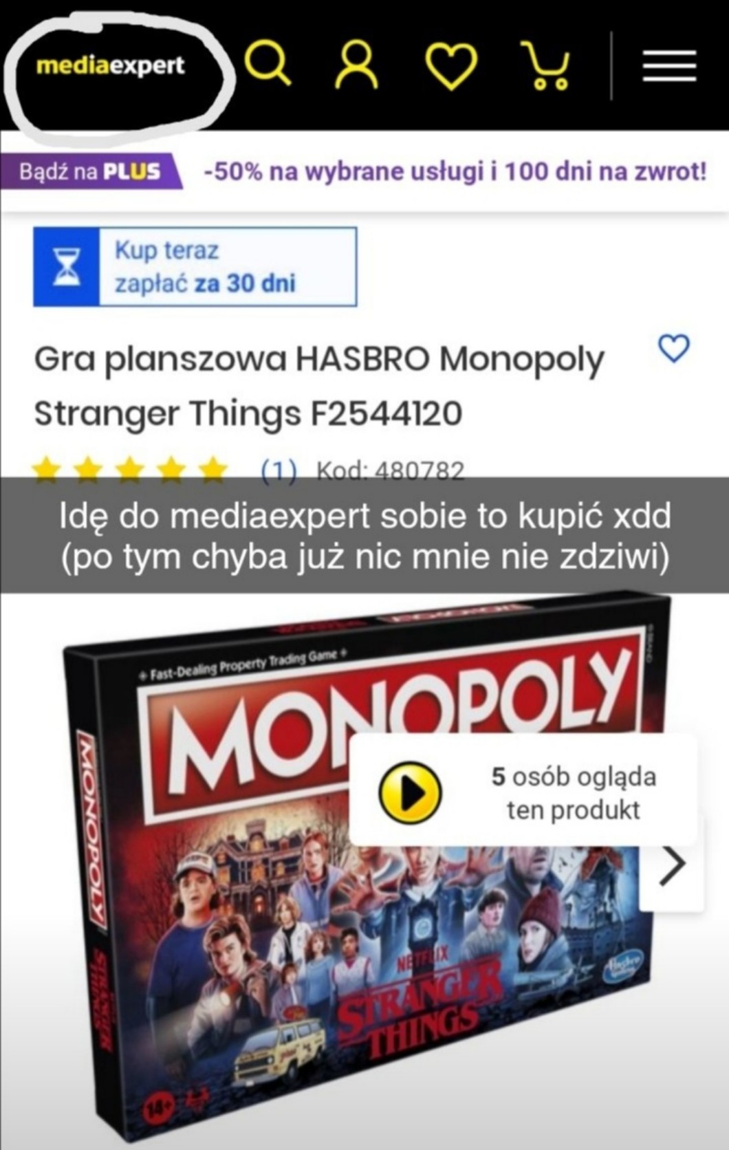 odkryłem że w mediaexpert można kupić monopoly (s4) Stranger Things dowody na zdjęciu, tylko mnie nie stać bo kosztuję chyba coś koło 150 zł