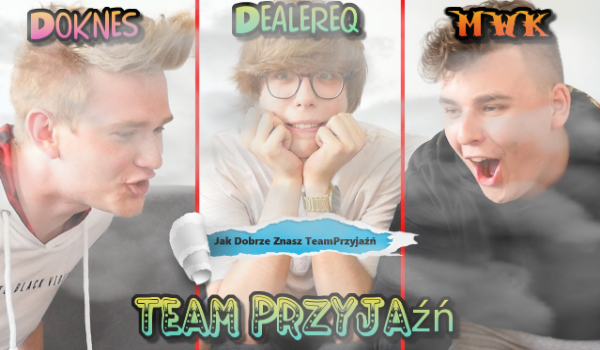 Tysiaxxxx Jak Dobrze Znasz TeamPrzyjaźń? Czy znasz dobrze chłopaków z TeamPrzyjaźń ? Śledzisz ich na YouTube ? Sprawdź swoją wiedzę ! Tysiaxxxx • 8 lat temu • 1 0 Rozpocznij quiz