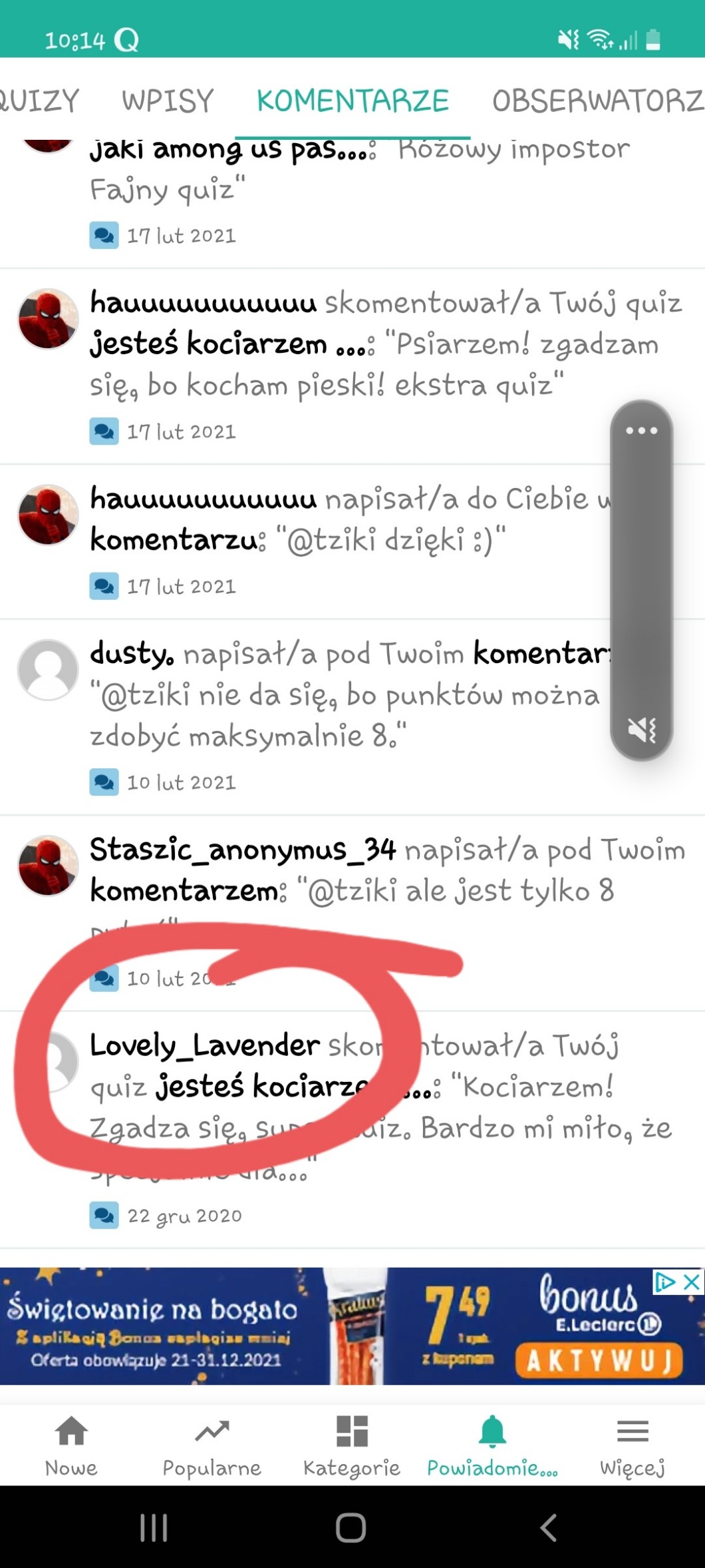 -Polubienie 5 ostatnich quizów