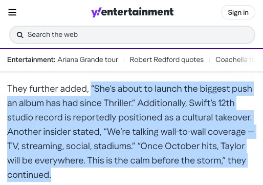AUTOR•Według insidera (osoby, która ma dostęp do poufnych lub niepublicznych informacji) promocja „The Life of a Showgirl” będzie „największą od czasów Thrillera”.