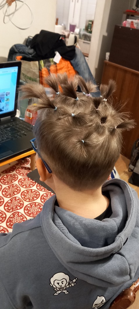 nudziło mi się więc uczesałam mojego brata (nie był zbyt szczesliwy)