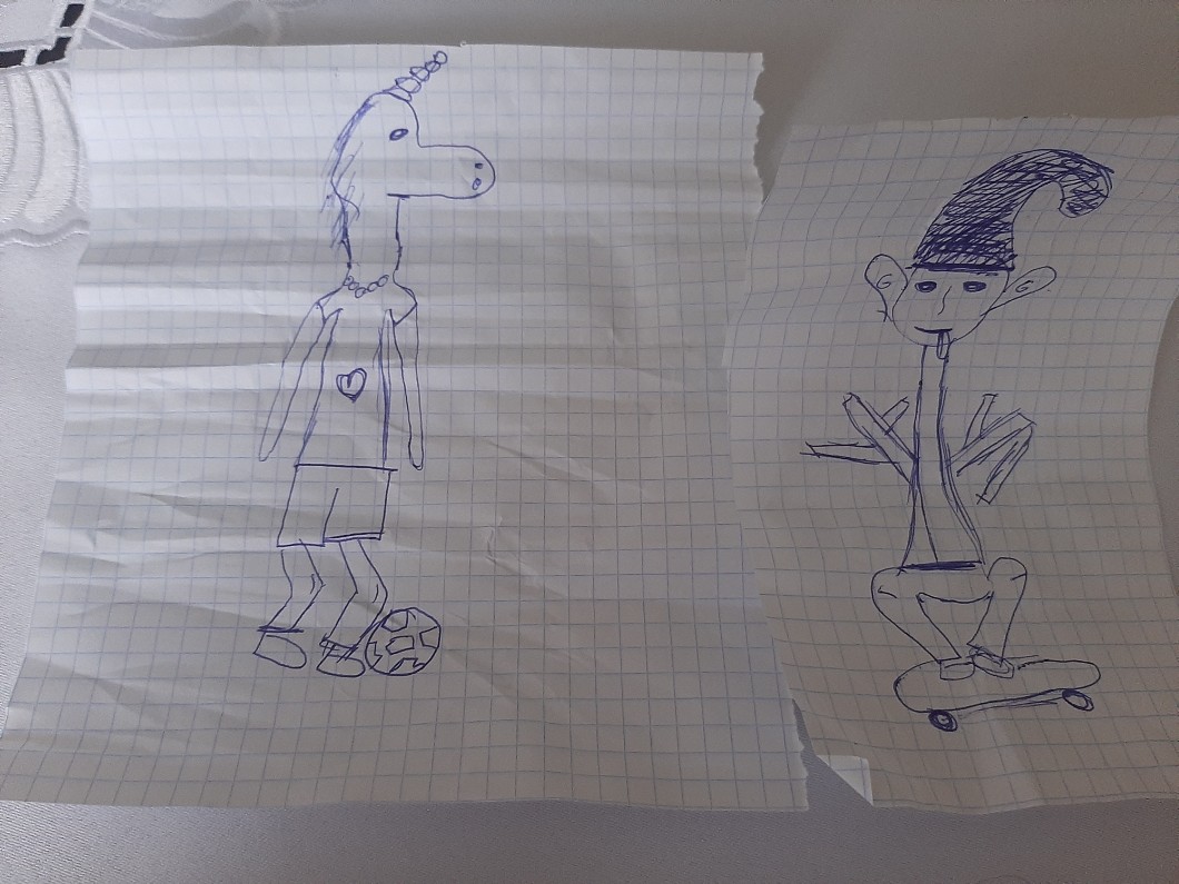 3. Znacie grę w zaginanie karteczek i rysowanie postaci? Rysujecie głowę, zaginacie, wymieniacie się karteczkami… No to efekty na dole😂(👇)
