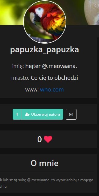 AUTOR•Ludzie!!!!!!!!!!!!!!!!!!!!!!!!!!!!!!! @.meovaana. chce się usunąć przez głupią papugę. Nie pozwólmy na to!!