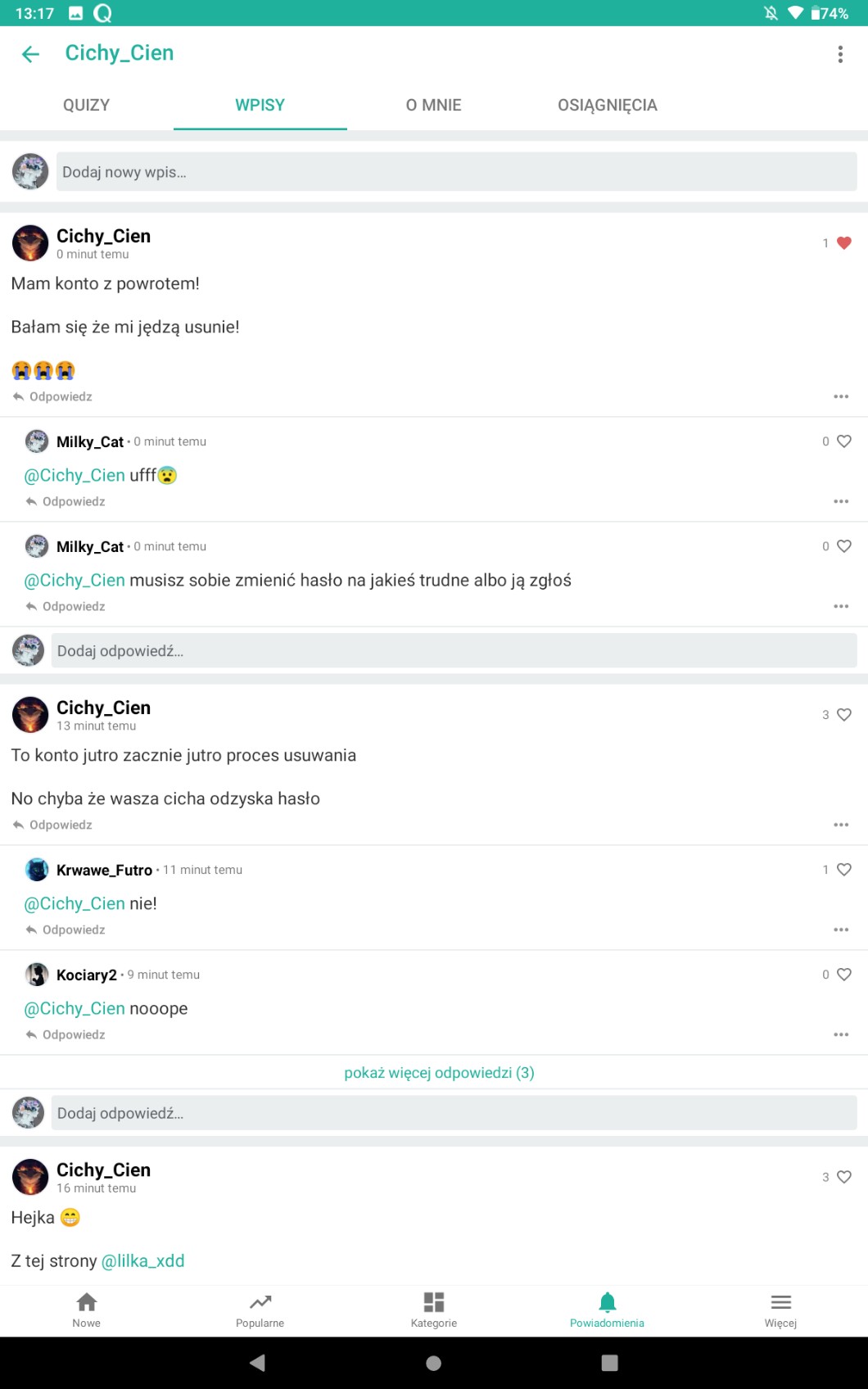Przy pomocy wpisów możesz zadać autorowi pytanie, pochwalić go, poprosić o pomoc, a