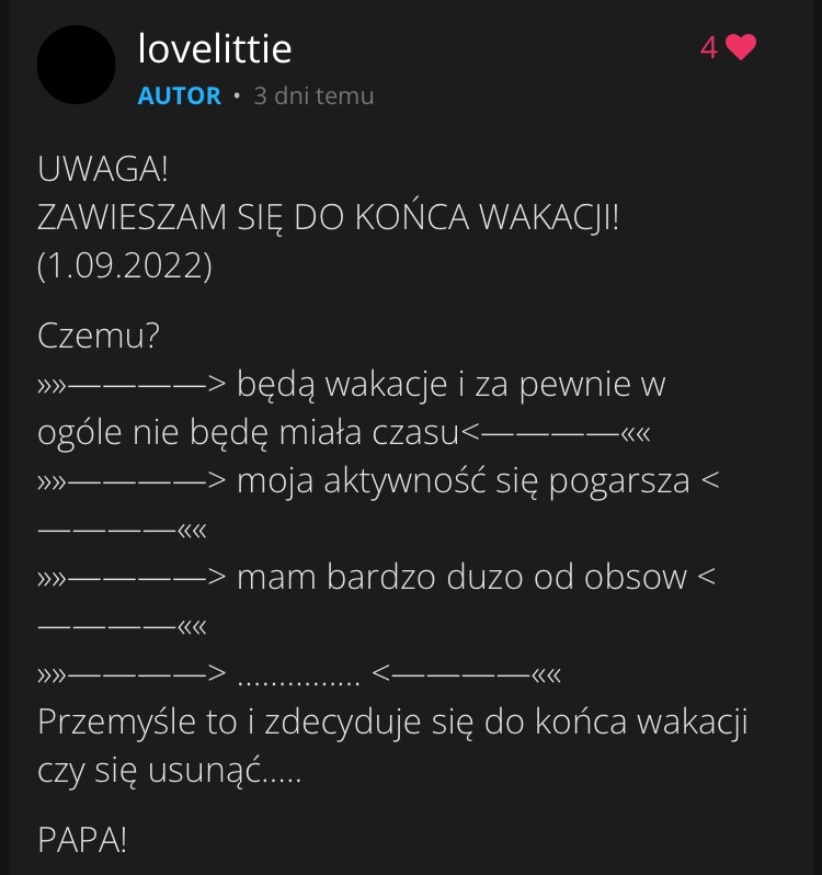 AUTOR•Ej ten nie będę aktywna całe lato wiec dlatego dodalam ten wpis ;v;