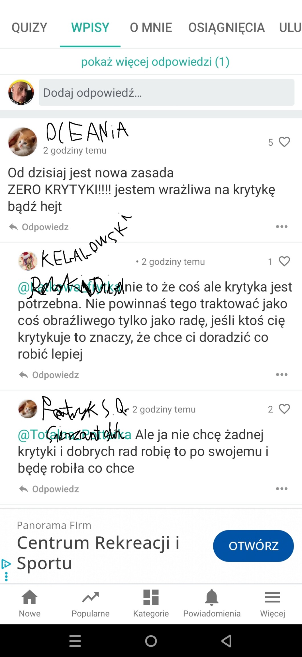 Przy pomocy wpisów możesz zadać autorowi pytanie, pochwalić go, poprosić o pomoc, a
