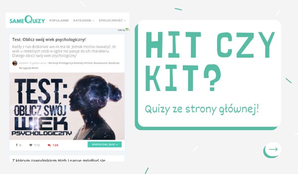Często przechodzisz quizy ze strony głównej? W takim razie zagłosuj, czy dany quiz jest dla Ciebie hitem czy kitem!