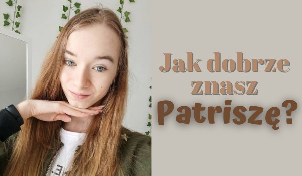 Patrisza to mało popularna YouTuberka nagrywająca głównie vlogi, czasami filmy o „Wojownikach”. Jeśli ją oglądasz, możesz przejść ten quiz i sprawdzić swoją wiedzę o niej!