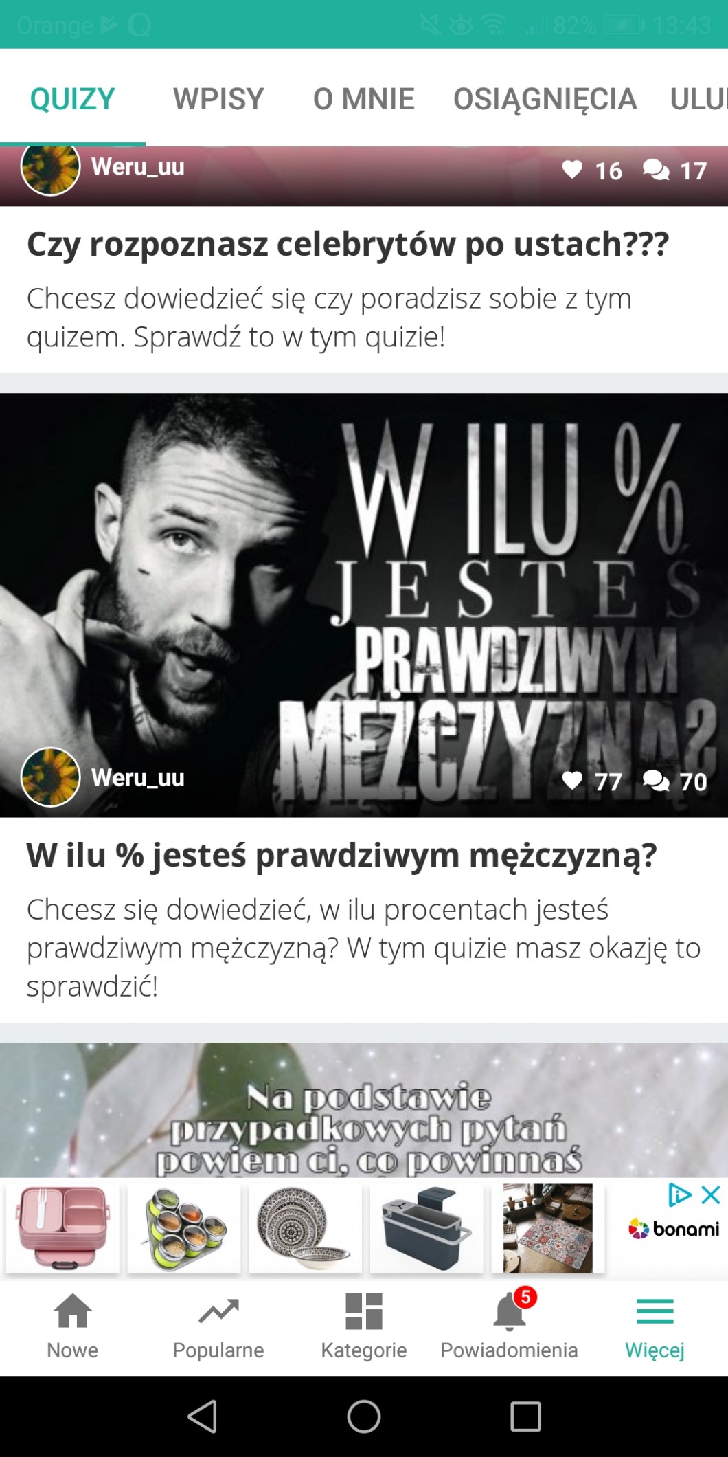 ❤️Pod quizem pt,, W ilu procentach jesteś prawdziwym mężczyzną?’ jest 46 ❤️. Jeszcze 4 i będzie osiągnięcie