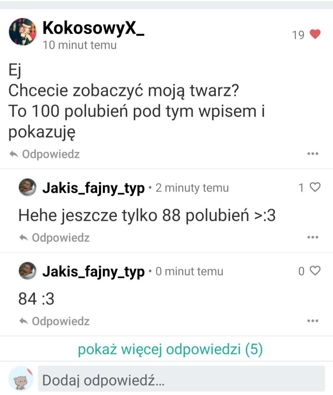 Przy pomocy wpisów możesz zadać autorowi pytanie, pochwalić go, poprosić o pomoc, a