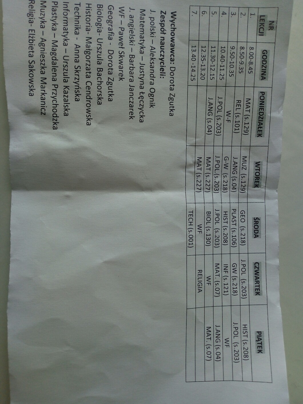 A w środę 7 lekcji