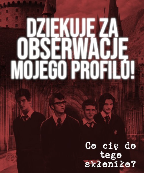 Hejka naklejka! Z tej strony Werka. Dziękuję za obserwację. Od dziś jesteś w gangu potterek. Czemu potterek? Zapytaj Gabi, ale nie wiem czy Ci odpowie.