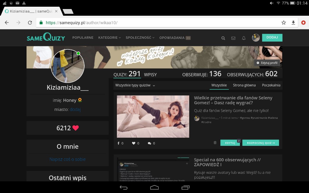 Cześć. Zaobserwuję cię przez mój nowy profil na SameQuizy