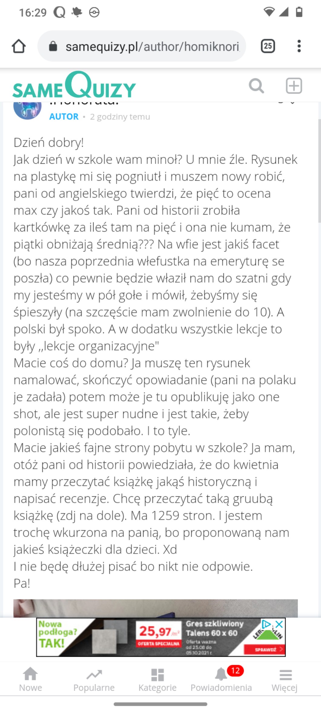 And muszem napisać dziś rozprawkę. Bo pisaliśmy próbną nie na ocenie, i pani na koniec roku zbierała zeszyty żeby sprawdzić. Tyle że mnie nie było w ostatni tydzień xd