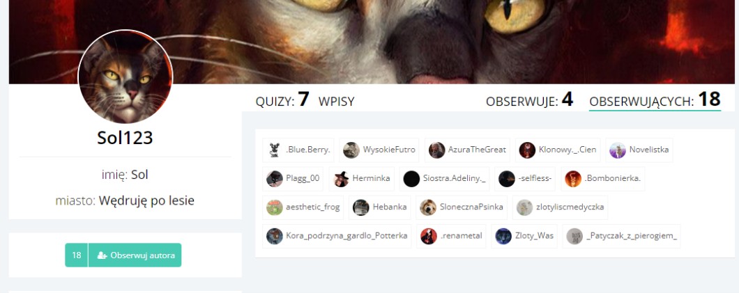 🔥Usuwam się i pewnie nie wrócę… Jestem dumna z wyniku w obs 121 to duża liczba. Wstawię jeszcze poniżej zdjęcie mojego starego profilu, pewnie większość z Was nie kojarzy mnie jak miałam nazwę @Sol123, i jakoś 7 obs. Podoba mi się nawet wynik osiągnięć jaką jest 15 szczególnie "Bloger". Żegnajcie!