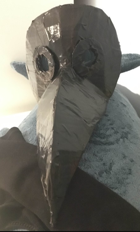 wiekszosc weekendu pochlonelo mi robienie maski Dr Plagi na halloween, bo taki stroj wlasnie wloze (tak, do szkoly. na calutki dzien. >:]) wiec sie pochwale, bo jak na karton, duct tape i szybki z plastikowych okularow dla dzieciakow wyszla fajnie!!
