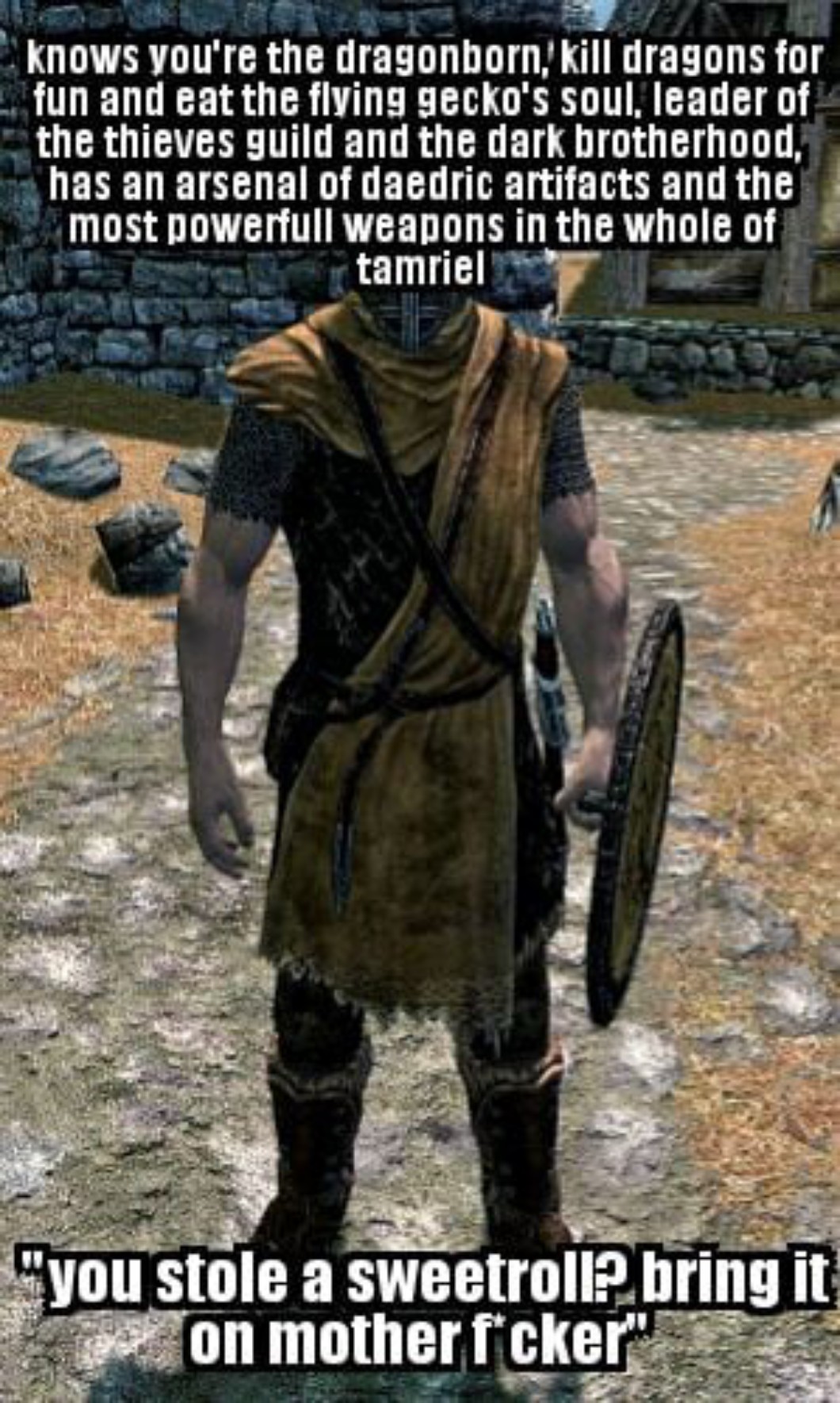 Masz na sumieniu zbrodnie przeciwko prowincji Skyrim i jej mieszkańcom. Co masz na swoją obronę?/(ewentualnie) zginiesz!