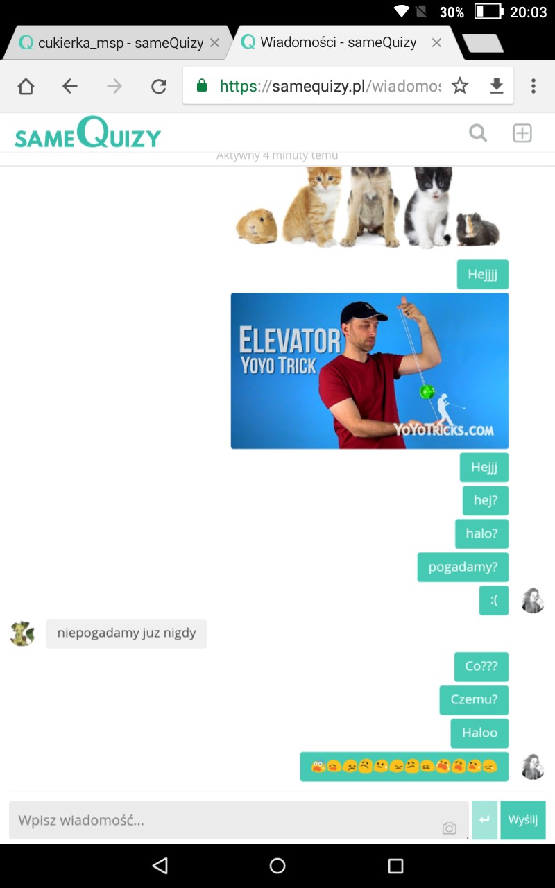 Czemu mi to napisałaś, czemu? Czekam na odpowiedź!