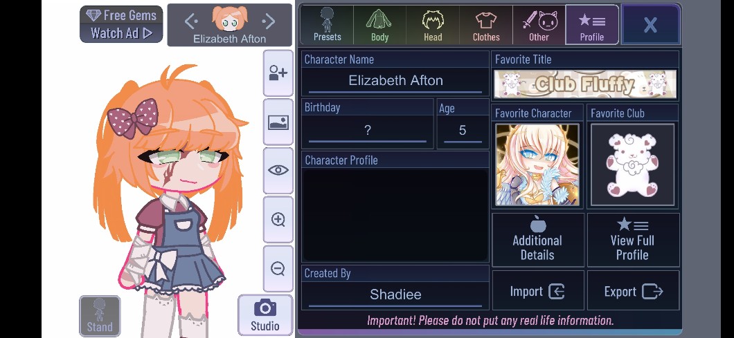 Challenge polega na zrobienie jakiejś osoby z Afton Family w gacha club/life